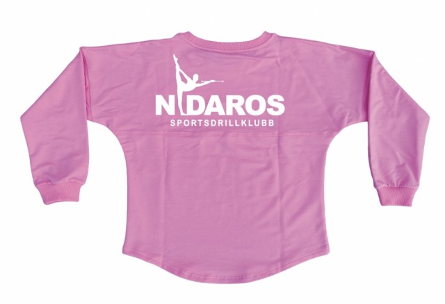 Oversized spirit jersey med dropped skulder og avrundet kant nederst. Logo på rygg. Velg vanlig eller glittertrykk. Meget populær jerseystil som stammer fra USA. Behagelig genser i tynn bomull. Hvis man ønsker de litt store, anbefaler vi en størrelse opp.